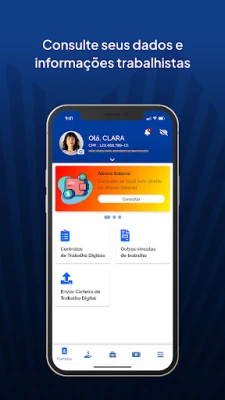 A dimensão financeira de sua jornada profissional também é contemplada. A Carteira de Trabalho Digital capacita o trabalhador a realizar simulações de empréstimos e a solicitar propostas adaptadas às suas necessidades. Mantenha-se plenamente informado sobre o status do seu empréstimo consignado, gerenciando aspectos cruciais, como os oferecidos pelo Crédito do Trabalhador, tudo em um único ambiente digital. É a sua parceria para um planejamento financeiro mais inteligente e descomplicado.