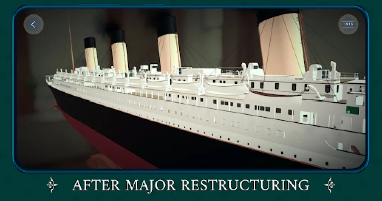 Navegue pelas vastas plataformas exteriores do Olympic, meticulosamente recriadas para capturar a essência da sua glória original. A imersão é total, permitindo-lhe apreciar a arquitetura deslumbrante e a escala impressionante deste navio histórico. Descubra as nuances entre as representações de 1911 e 1913, testemunhando as subtis alterações e a evolução deste magnífico transatlântico ao longo dos seus primeiros anos de serviço.