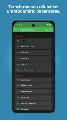 Transforme seu celular em um poderoso laboratório de sensores. Este aplicativo usa os sensores internos do smartphone para coletar, exibir, gravar e exportar dados em formato CSV. É ideal para experimentos de física, engenharia e STEM, aplicável tanto em sala de aula quanto em pesquisas e atividades de campo.