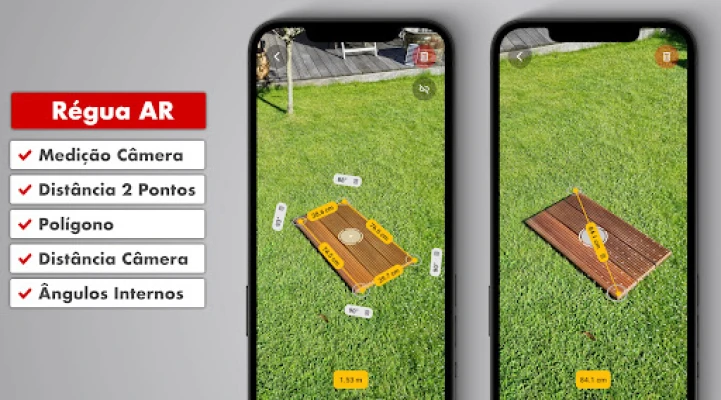 Desvende um novo mundo de precisão e praticidade com Regua, Fita Métrica, Medida AR, a ferramenta que redefine a forma como você mede. Transforme instantaneamente seu smartphone ou tablet Android em um dispositivo de medição inteligente, utilizando a potência da sua câmera para calcular comprimentos, áreas e distâncias com uma exatidão surpreendente. Desde sua criação em 2020, Regua, Fita Métrica, Medida AR conquistou a confiança de quase 1 milhão de usuários globalmente, consolidando-se como uma solução indispensável para todas as suas necessidades de mensuração digital, de medições rápidas a projetos de design complexos.