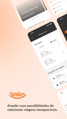 Desvende um universo de possibilidades de viagem e recompensas com o aplicativo Smiles. Sua porta de entrada para o programa de fidelidade da GOL, o app Smiles centraliza tudo o que você precisa para explorar novos horizontes, tudo na palma da sua mão. De passagens aéreas para mais de 1600 destinos globais a reservas de acomodações perfeitas para seu estilo, aluguel de veículos no Brasil e exterior e a tranquilidade de um seguro viagem, cada detalhe da sua jornada é cuidado para sua conveniência máxima.